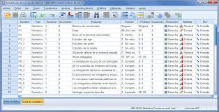Además de esta vista de datos, en las últimas versiones del programa existe una vista de variables en la que se describen las características de cada una. En esta vista las filas corresponden a cada variable y las columnas nos permiten acceder a sus características: